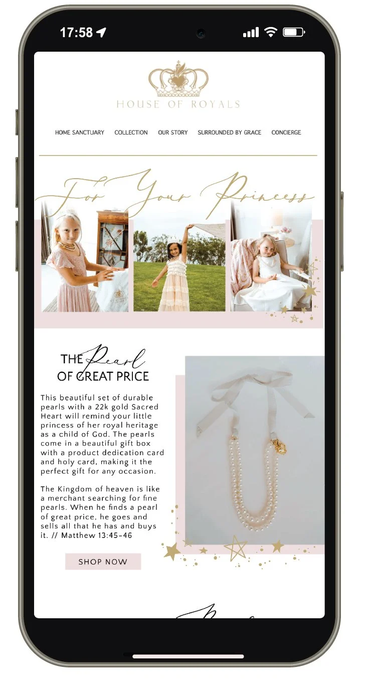 A luxury gifting company focused on the Catholic consumer. House of Royals had a clearly defined merchandise aesthetic, my mandate was to translate this aesthetic to their email marketing.